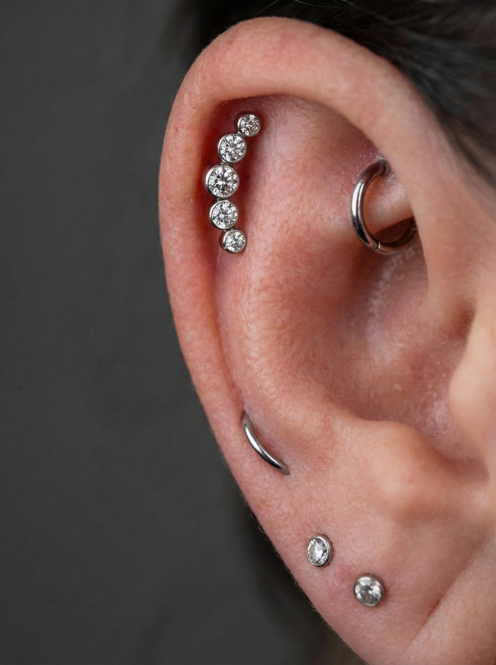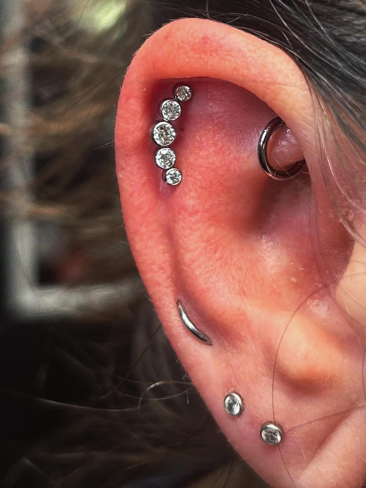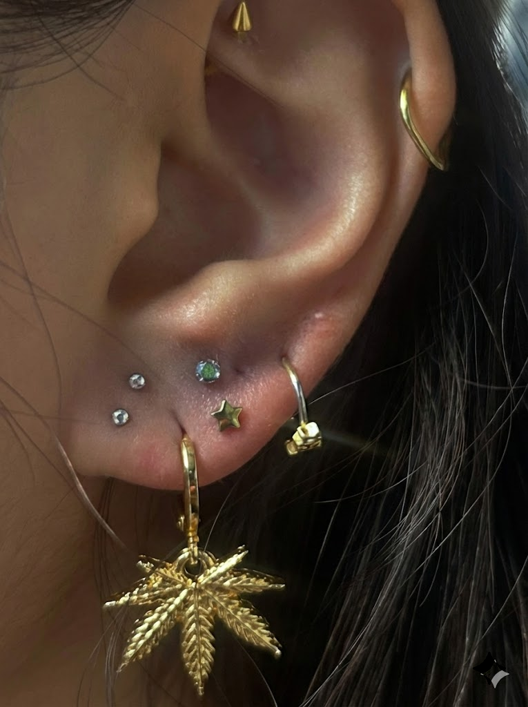 Healing timelines vary: lobes 6-8 weeks, cartilage 3-6 months, body piercings 6-12 months. But the “settling in” — when it stops feeling new and starts feeling essential — that’s what Jasmine designs for.